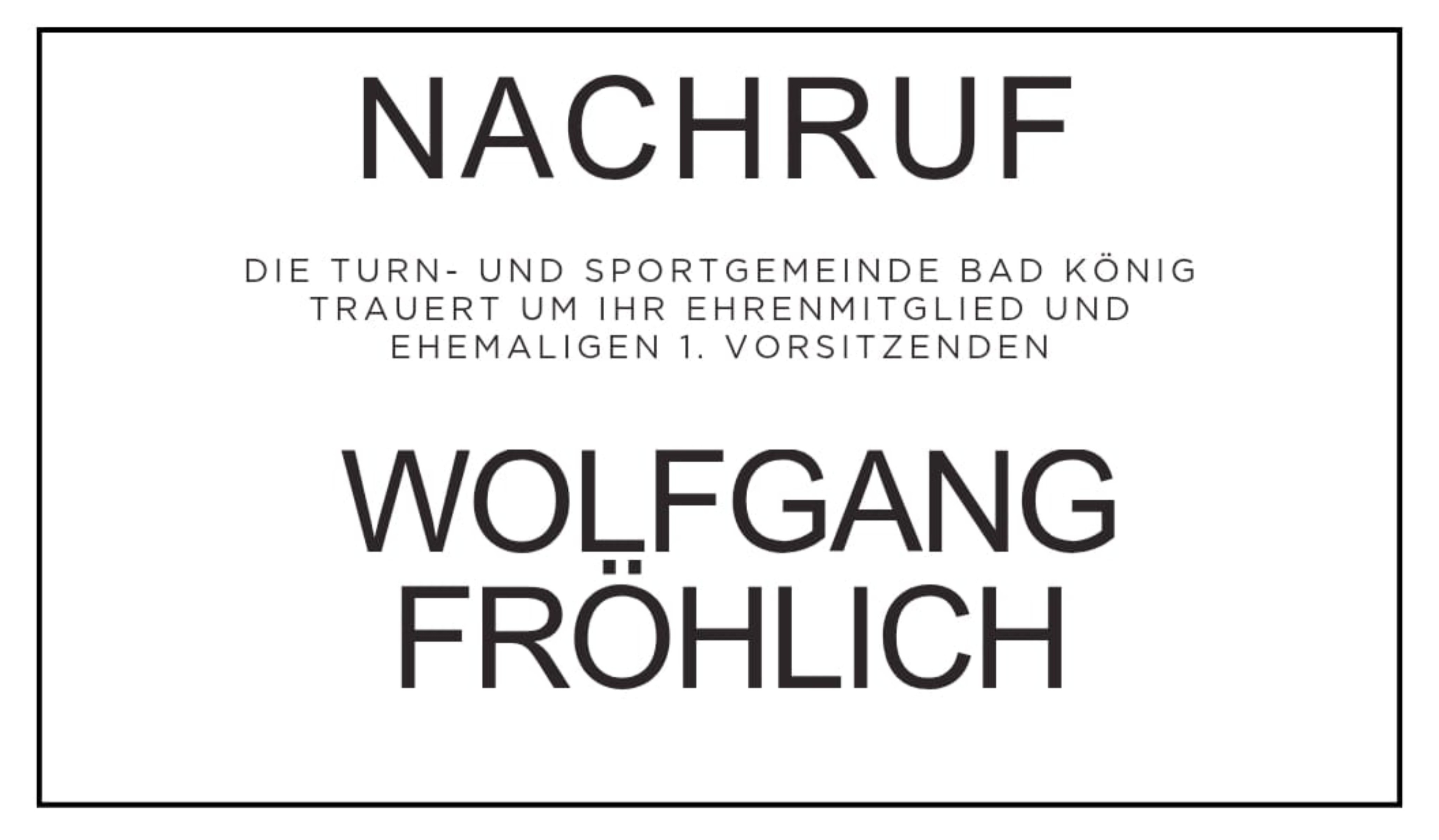 Über unglaubliche 45 Jahre stand Wolfgang Fröhlich an der Spitze unseres Vereins. Mit außergewöhnlichem Engagement, unermüdlichem Einsatz und großer Weitsicht führte er die Turn- und Sportgemeinde Bad König durch Jahrzehnte der Entwicklung. Sein Wirken hat unseren Verein nachhaltig geprägt und maßgeblich gestaltet.