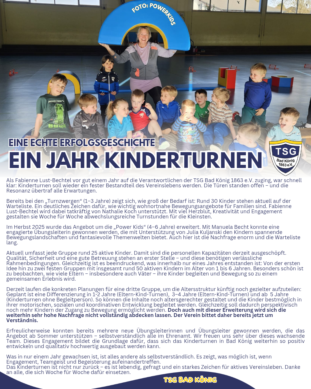 Was vor einem Jahr neu gestartet ist, begeistert heute Woche für Woche viele Kinder. Die große Nachfrage zeigt, wie wichtig Bewegung und Gemeinschaft für die Kleinsten sind.